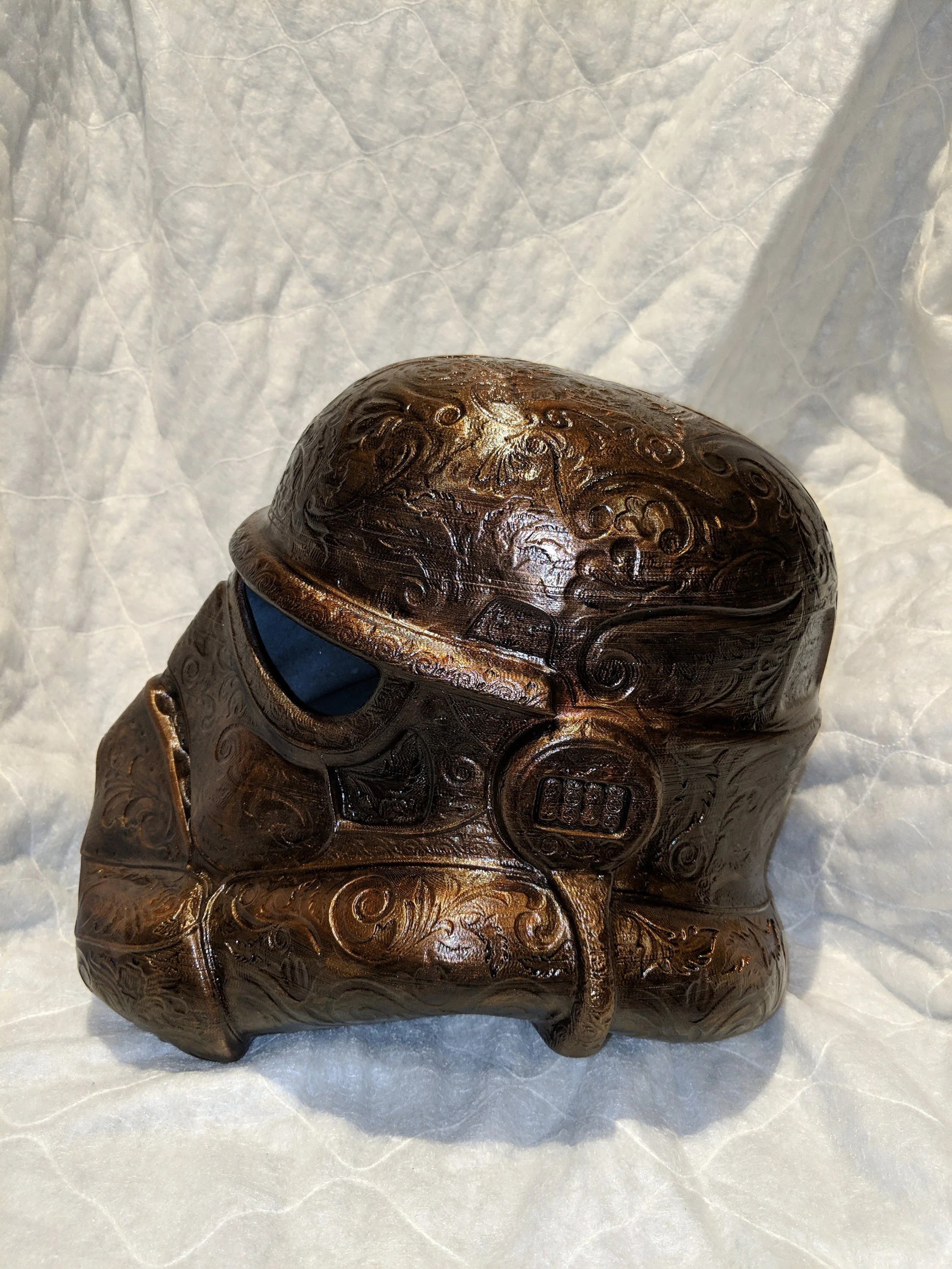 A highly detailed intricate Storm Trooper helmet. Designed and created by Hex3D. We are proud to be able to offer such amazing works of art by a very talented artist.