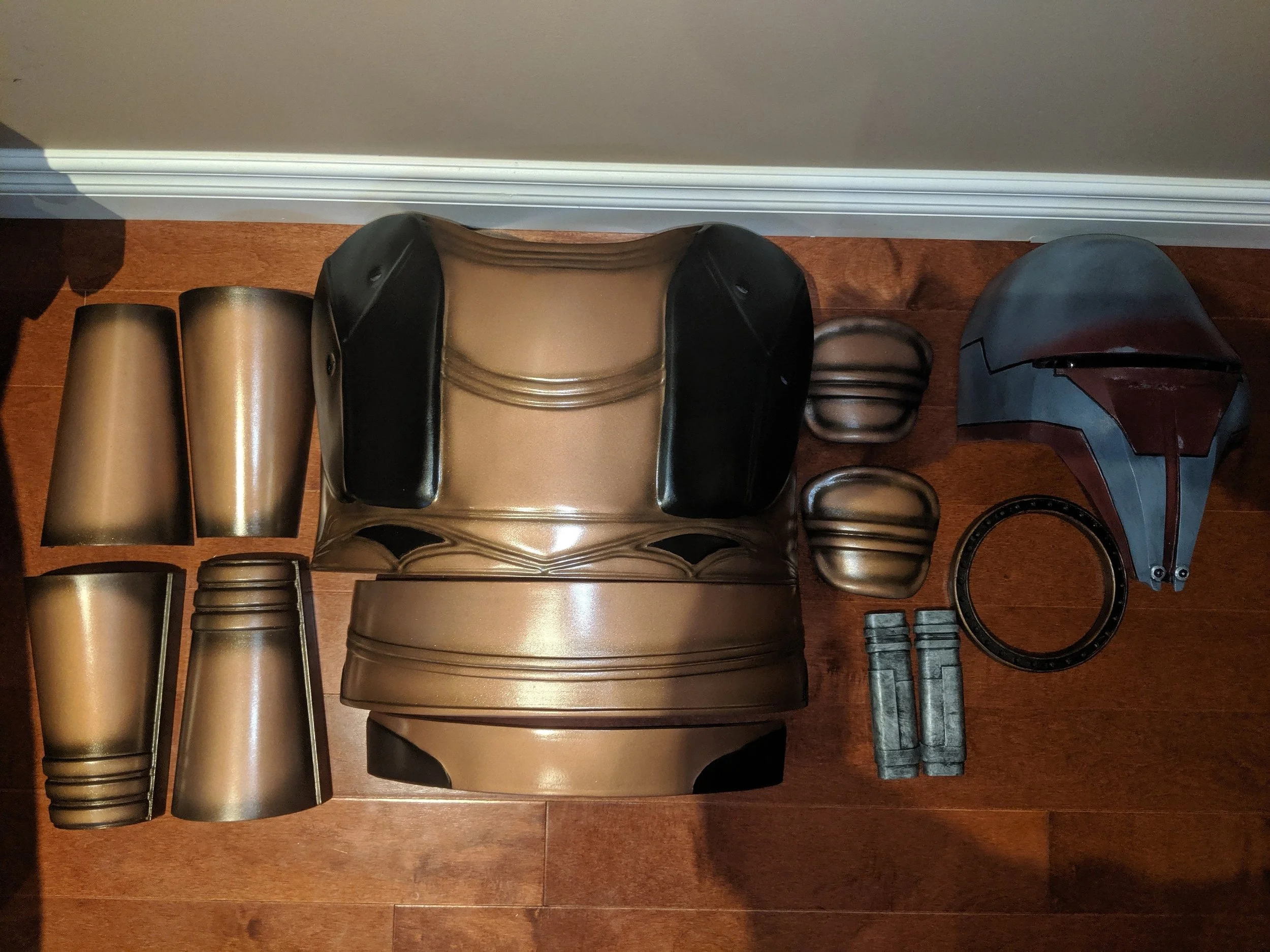 Painted and Costume: The complete armor set including the mask will be painted to the 332nd (501st) paint scheme. Three tone copper patina and black. As well as a complete cloth costume set (as listed above). Sanded, Primed, and painted in the a two stage process. Please contact me about painted commissions as all painted commissions will be handled through a Paypal invoice.
