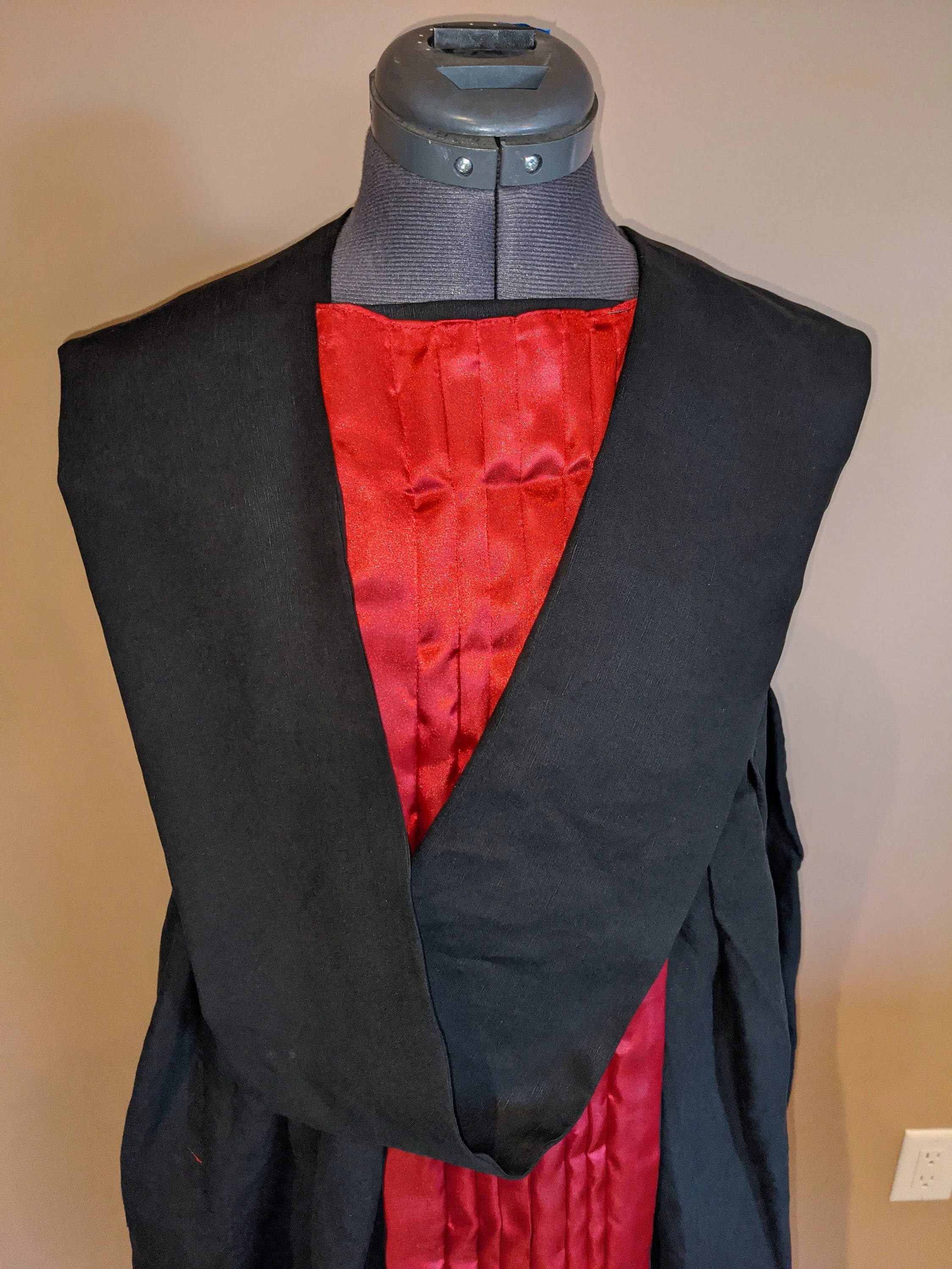 Cloth Costume: All the soft cloth costume parts. Cape, hood, belt sash and loin cloth, and split skirt. Length from the shoulder to floor plus 3/4" as well as from waist to floor plus 3/4" is required.